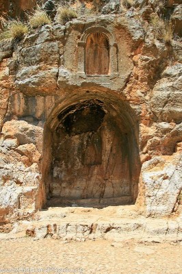 For now, I’ll leave you with two pictures from Caesarea Philippi, where the event recorded in Matthew 16 took place, from HolyLandPhotos.org.  If you click through on either, it will open a new page there and you can see Dr Rasmussen’s other pictures from Caesarea Philippi.  The second shows the rock cliff face — perhaps part of the reason the Lord chose this location to tell His disciples, “upon this rock.”